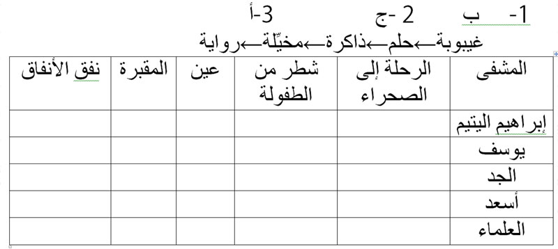 تشير الأرقام- أدناه- إلى التسلسل في الرواية بينما تشير الحروف إلى تسلسلها الزمني. إذ من المفروض أن مرحلة الطفولة التي يروي شطرا منها سابقة عن دخوله المشفى. وهذا التنافر الزمني أصبح من سمات الكتابة الروائية الجديدة، ومن شأنه أن يُشوِّش ذهن المتلقي ويقطع عليه حبل التسلسل ما يضطرّه إلى إعادة ترتيب الأحداث، ويعني في المحصِّلة أن الرواية الحداثية تشترط قارئا حداثيا أيضا.