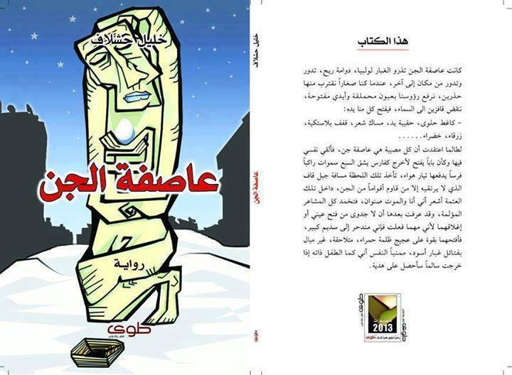 تطل بنا رواية عاصفة الجن الصادرة عن “دار طوى اللبنانية لسنة 2013″ للروائي “خليل حشلاف” على حلم ممزوج برغبة جارفة في التغيير، و تفتح أقواسا لفترة زمنية وجيزة، هي الإرهاص الأوّل لإتجاه أحداث التسعينيات ، ولحظة إنفجار هائل تمخّض عن إعتمال الأشياء المتناقضة في الذات، وسط عالم تداعت أركانه وتداخلت طبقاته، كما تقترح علينا_ تلك اللحظة _ صياغة عالم جديد ضمن المتخيّل والفضاء السّردي ..عالم تتداخل فيه الأشياء لتبرز في خلق جديد قوامه حبّ من نوع آخر، وتسلط على الأخر، كما تكشف النزعة الريبية لدى الكاتب الذي يقابلُ بين مفهومي الحب والتسلط عبر تمثيل العلاقة (الحب والنفور) وعبر اقتراحين قوامهما أن تعدّد النساء في حياة البشر لا يجعله بالضرورة من ذوي القلوب الرحيمة، والواسعة للجميع، وأن التسلّط ليس هدفا بحدّ ذاته بقدر ما هو صراع بقاء.في عالمه (عاصفة الجن) الذي يستوعب كل المتغيرات وكفضاء جديد مسكون بالالتباس يمنحنا مساحة ممتلئة بفعل التأويل.